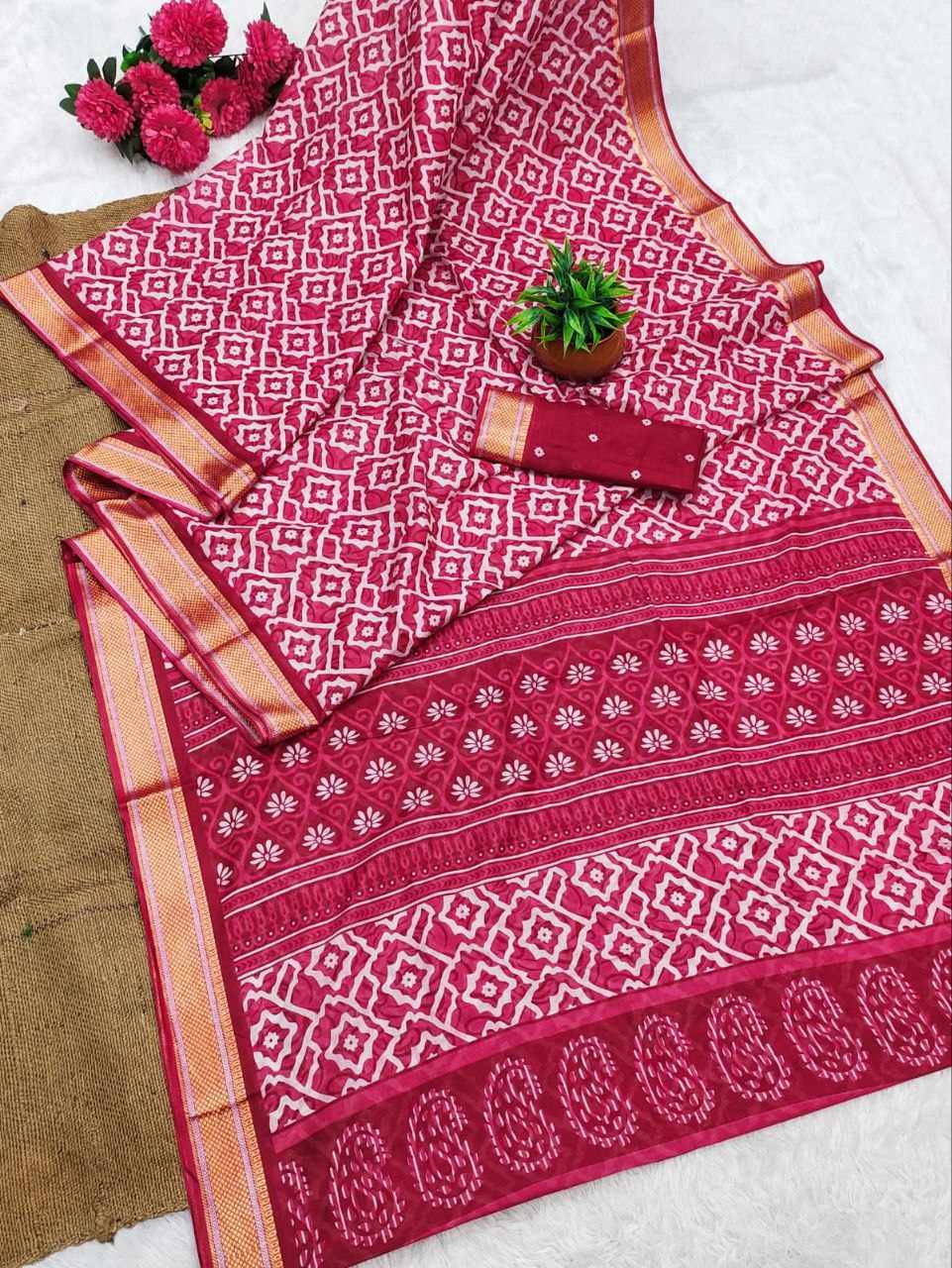 JBC 1095 Bagru Ajrakh Printed Cotton Saree
