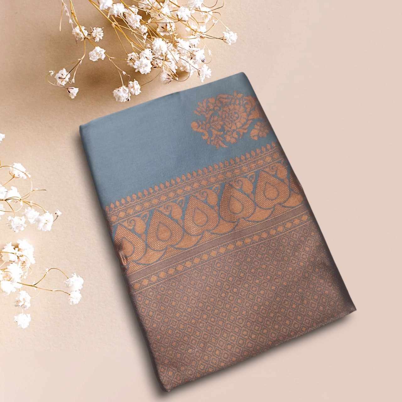 MF 2030 NEW BEAUTIFUL JACQUARD WORK ON GREY SAREE