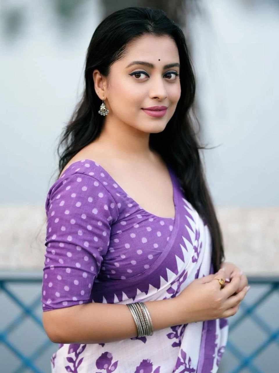 | Name : | PIYU P1020 White rose Purple Saree |