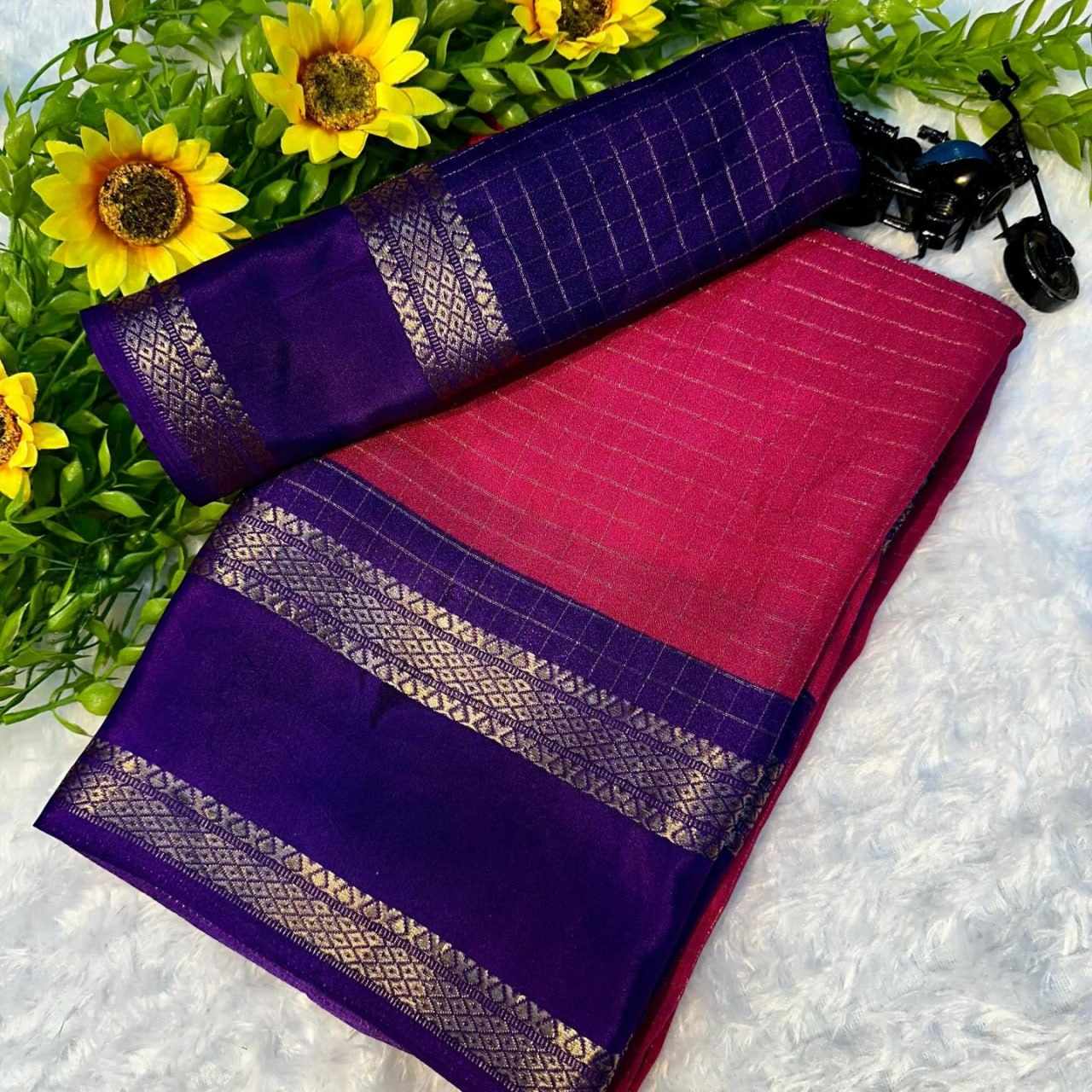 Saree Fabric : Jacquard border with mill printed sarees design