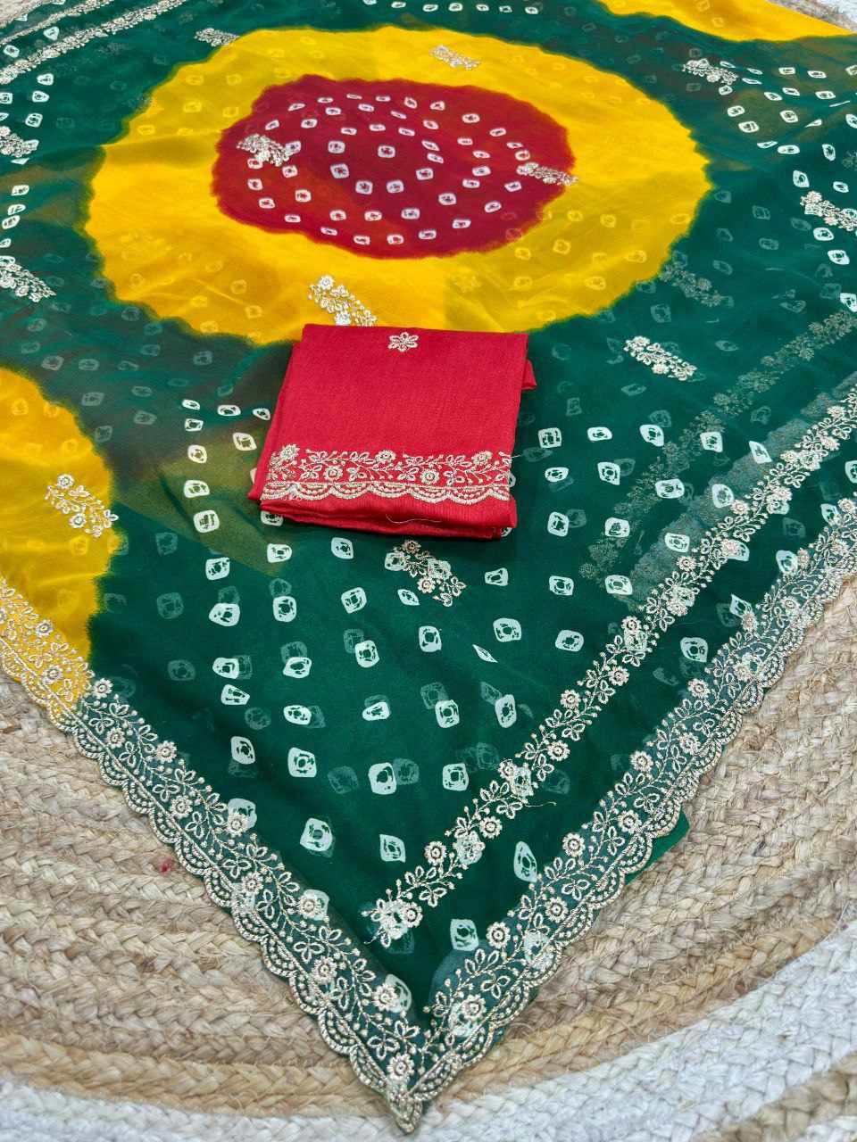 PIYU P1051 LEHERIYA BANDHANI-3 Green Saree